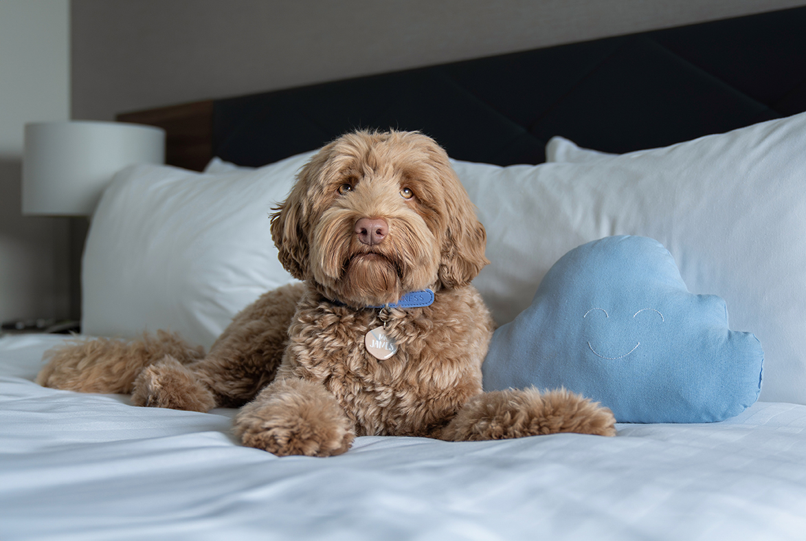 En yes, honden zijn gewoon welkom. James voelde zich direct thuis. Op de kamer lag een zacht hondenkussen voor hem klaar, maar hij mocht natuurlijk eerst even ons bed testen. Helemaal goedgekeurd en daarna niet meer vanaf te krijgen.